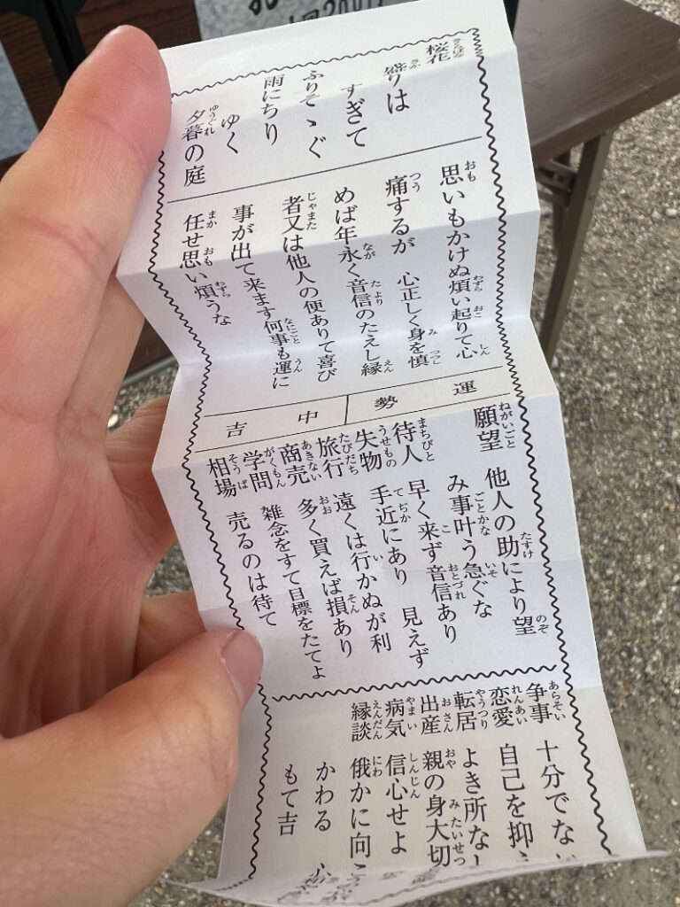 参拝後におみくじを引き、あわせて書き置きの御朱印もいただきました。